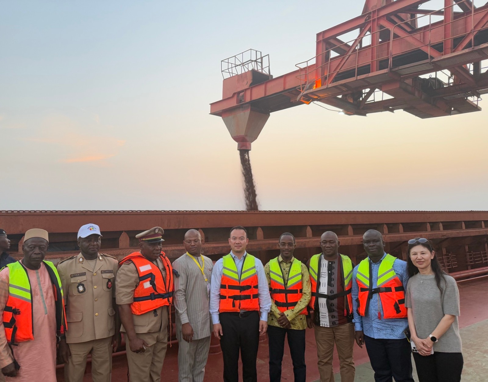几内亚外地时间2024年12月11日下昼,,,,,,,,公司董事长曾超林出席并主持了几内亚项目铝土矿的首次发运装船仪式,,,,,,,,几内亚矿业部官员、所在省份认真人等出席发运仪式,,,,,,,,配合见证了该项目投资建设效果落地这一重大里程碑意义的时刻。。。。。。。